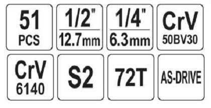 YATO YT-38680 Dugókulcs készlet 51 részes 1/2", 1/4" CrV