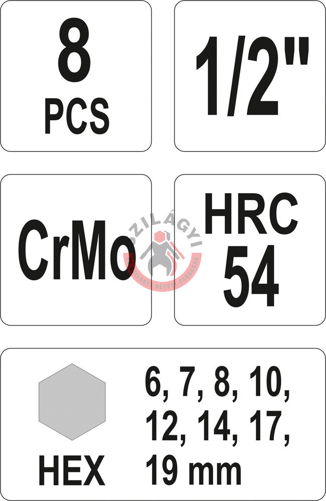 YATO YT-1066 Gépi IMBUSZ kulcs készlet 1/2" 8 részes 6-19mm