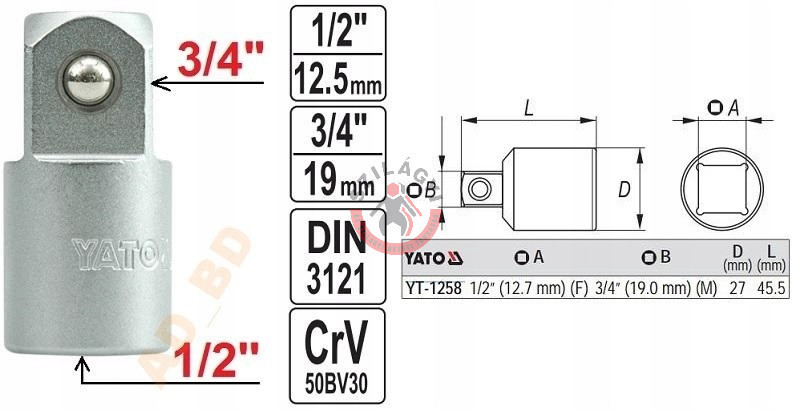 YATO YT-1258 Átalakító 1/2"-ról 3/4"-ra