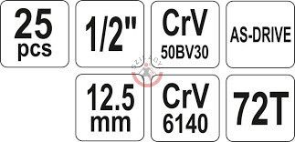 YATO YT-12671 Dugókulcs készlet 1/2" 25 részes