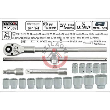 YATO YT-1335 Dugókulcs készlet 3/4" 21 részes