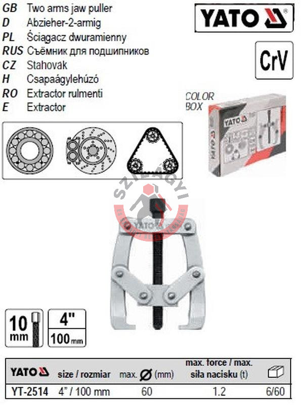 YATO YT-2514 Csapágylehúzó 2 karos 4" 100mm