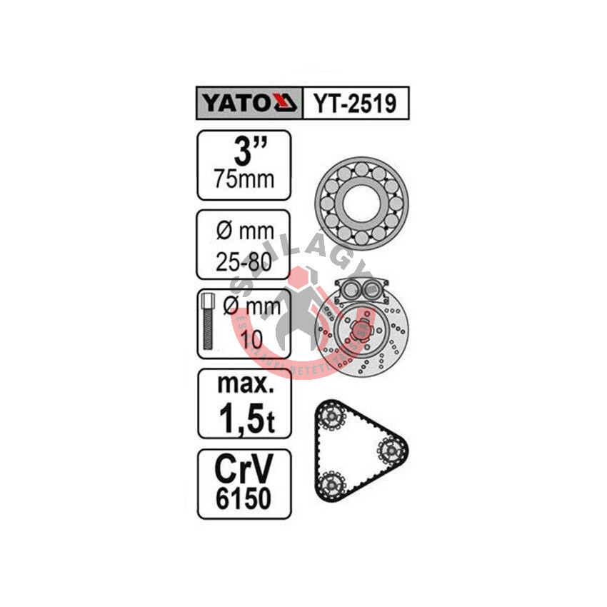 YATO YT-2519 Csapágylehúzó 3 karos 3" 75mm