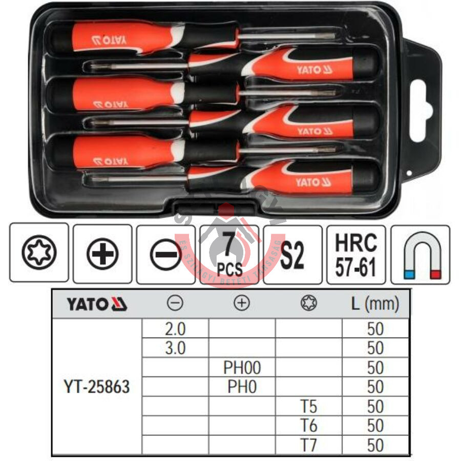 YATO YT-25863 Órás csavarhúzó készlet 7 részes (T5,6,7,PH00,PH0,2.0,3.0)