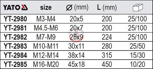 YATO YT-2982 Menetmetsző hajtóvas M7 - M9