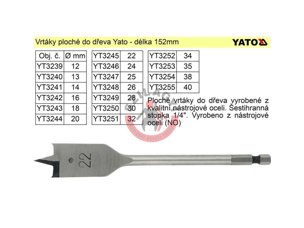 YATO YT-3245 Homlokmarós fafúró 22x152mm