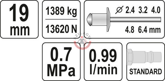YATO YT-3618 Pneumatikus popszegecshúzó 2.4-6.4mm