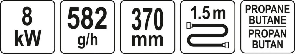 YATO YT-36740 Gázégő 8kW, 2 pótfejjel, 1.5m tömlővel