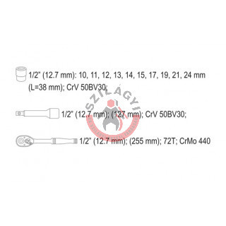 YATO YT-38671 Dugókulcs készlet 1/2" 12 részes