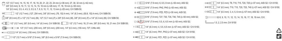 YATO YT-38831 Dugókulcs készlet 1/4" 3/8" 1/2" 111 részes