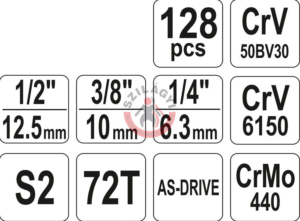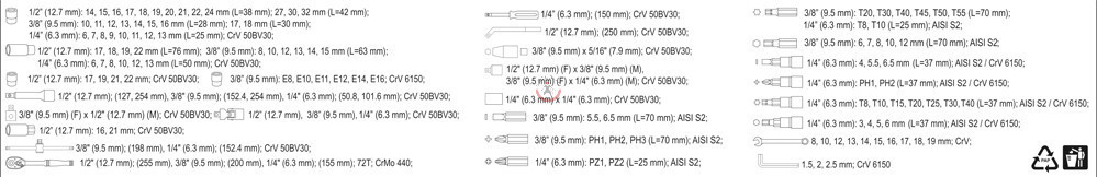 YATO YT-38872 Dugókulcs készlet 1/4" 3/8" 1/2" 128 részes
