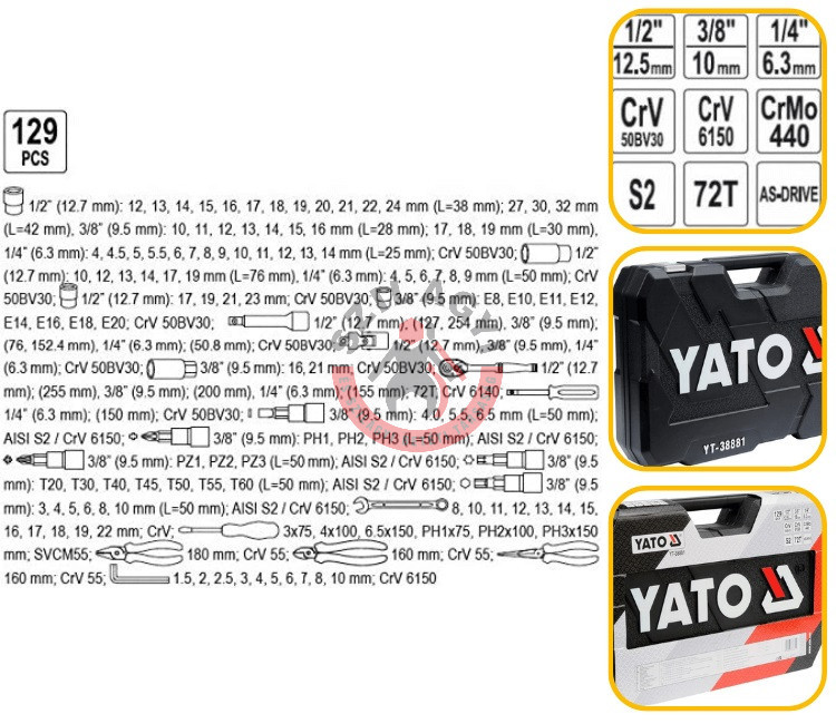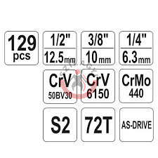 YATO YT-38881 Dugókulcs készlet 1/4" 3/8" 1/2" 129 részes
