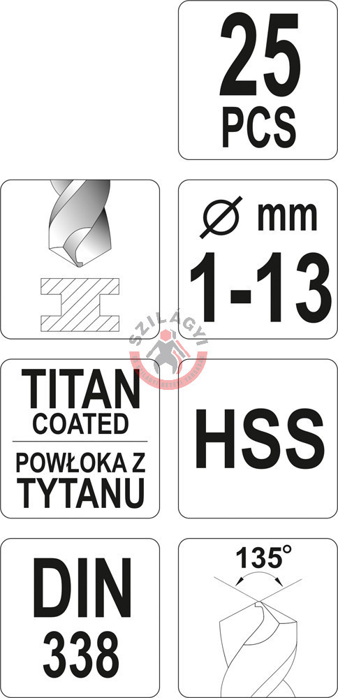 YATO YT-44676 25 részes HSS-TiN fémcsigafúró készlet 1-13mm