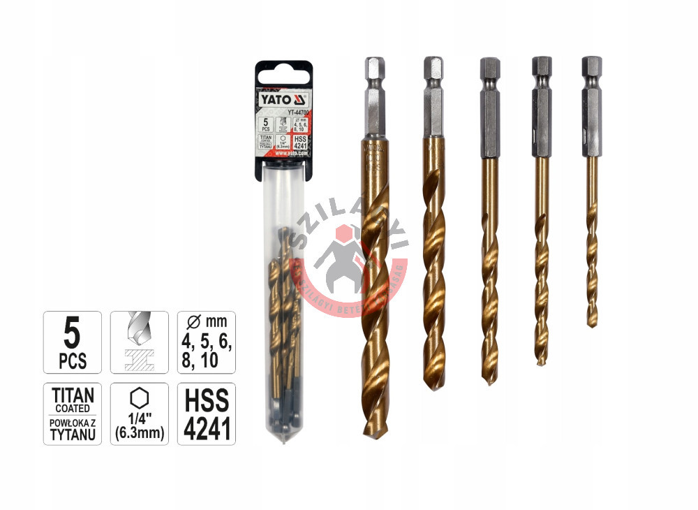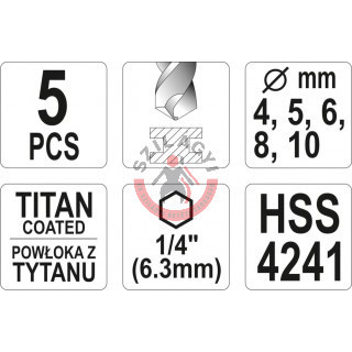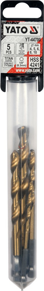 YATO YT-44700 Fúrószár készlet fémhez 5 részes 6lap befogású 4, 5, 6, 8, 10mm