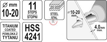 YATO YT-44745 Lépcsős fúró 10-20mm HSS