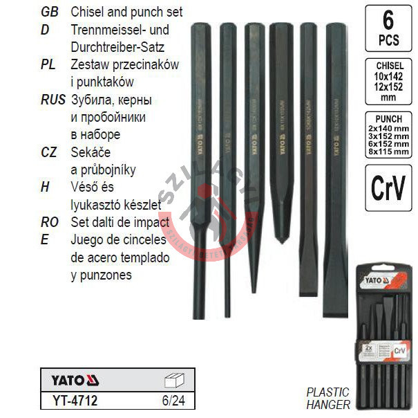 YATO YT-4712 Véső-lyukasztó készlet 6 részes