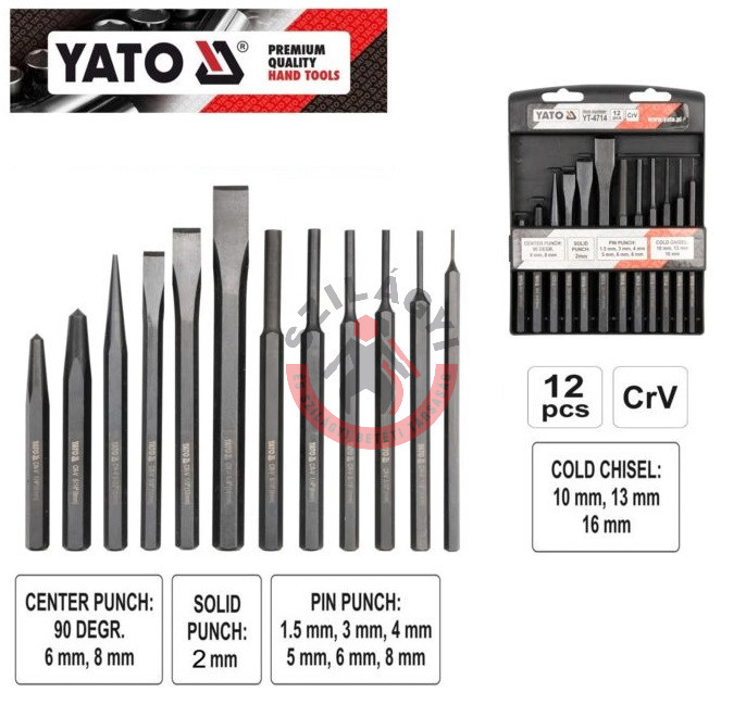 YATO YT-4714 Véső-lyukasztó készlet 12 részes