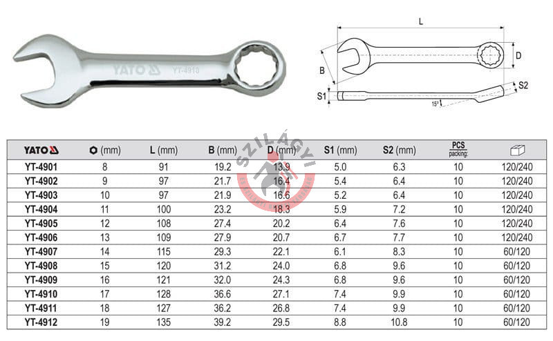 YATO YT-4901 Csillag-villáskulcs rövidített 8mm