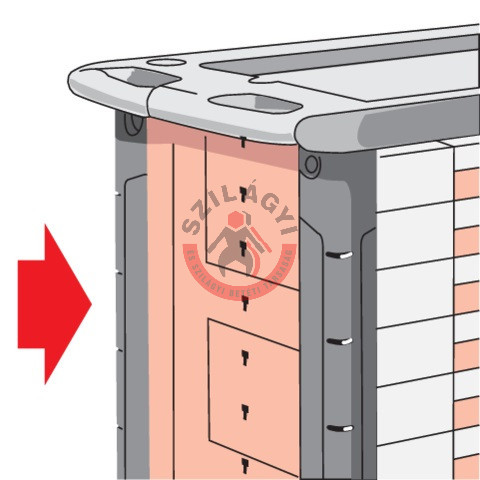 6 tágas fiók, blokkoló képességgel: 25 kg - 3 felső, 35 kg - 3 alacsonyabb