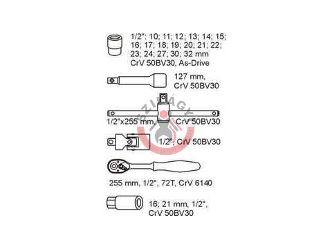 YATO YT-5537 Fiókbetét 5530-hoz: 1/2" dugókulcs készlet 24 részes
