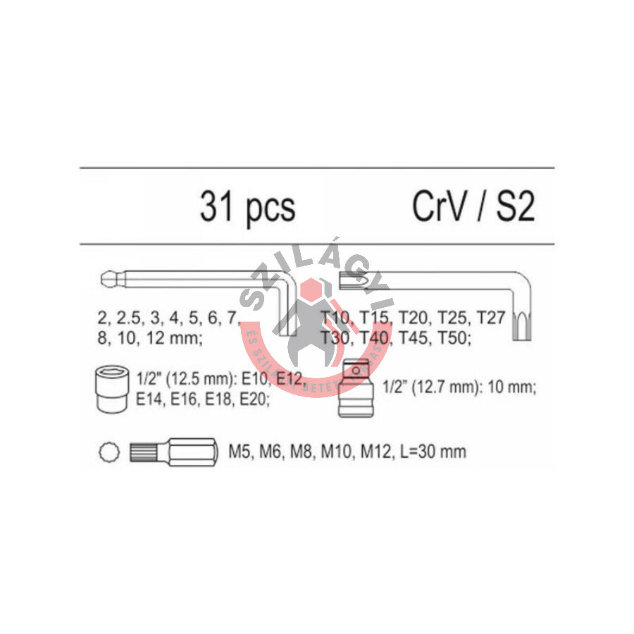 YATO YT-55451 Fiókbetét 5530-hoz: imbusz, torx és 1/2" dugókulcs készlet 31 részes