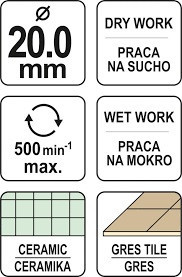YATO YT-60428 Gyémánt körkivágó 20 mm vizes/száraz