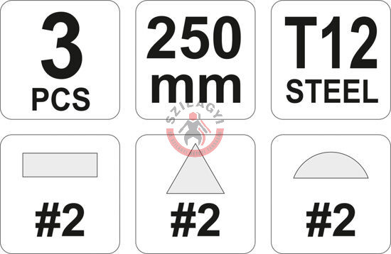 YATO YT-6237 Lakatos reszelő készlet 3 részes 250mm #2 (félkör, háromszög, lapos)