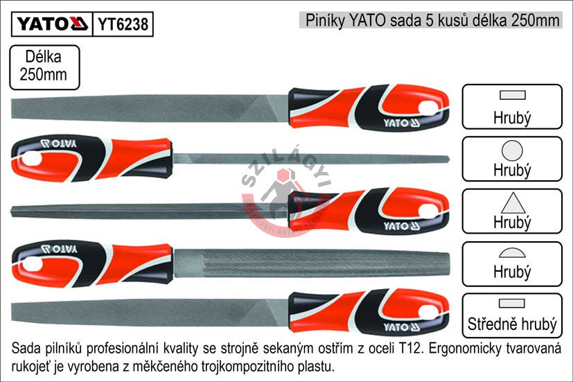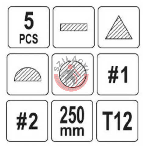 YATO YT-6238 Lakatos reszelő készlet 5 részes 250mm #1-2 (lapos, félkör,kör, háromszög)
