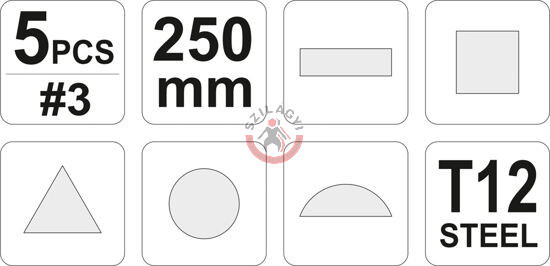 YATO YT-6239 Lakatos reszelő készlet 5 részes 250mm #3 (kör, lapos, háromszög, félkör, négyz)