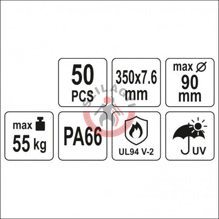 YATO YT-70652 Kábelkötegelő 350x7,6 mm, fekete, 50 db/csomag