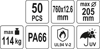 YATO YT-70659 Kábelkötegelő 760x12,6 mm, fekete, 50 db/csomag