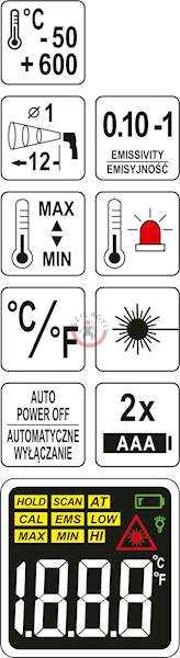 YATO YT-73200 Lézeres hőmérő -50 °C +600 °C