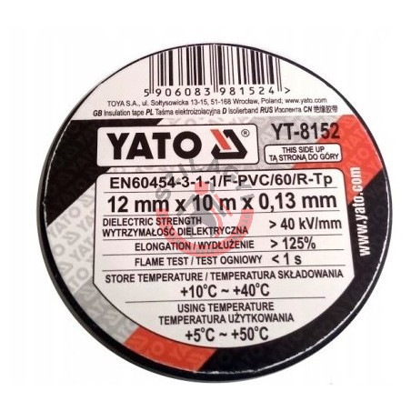 YATO YT-8152 Szigetelőszalag fekete 12mm x 10m x 0,13mm