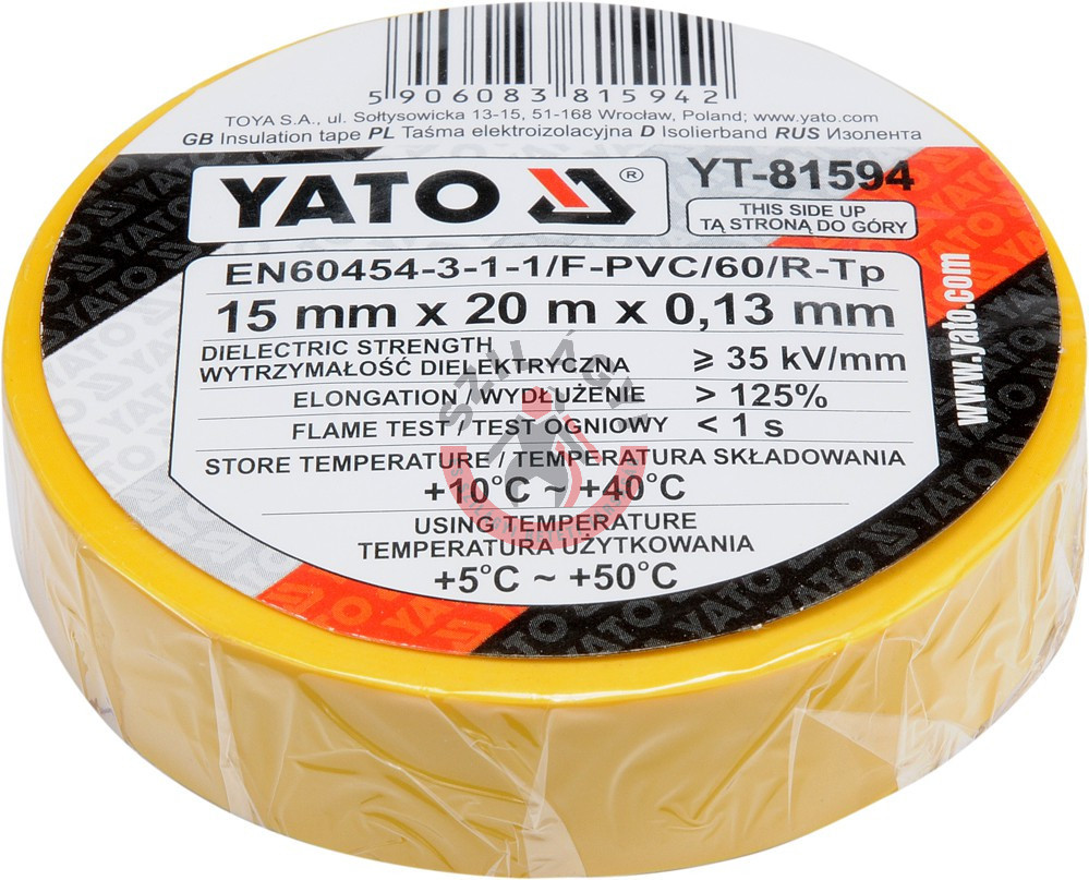 YATO YT-81594 Szigetelőszalag sárga 15x0.13mm 20m