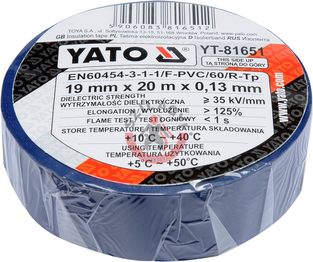 YATO YT-81651 Szigetelőszalag kék 19mmx0.13mm 20m