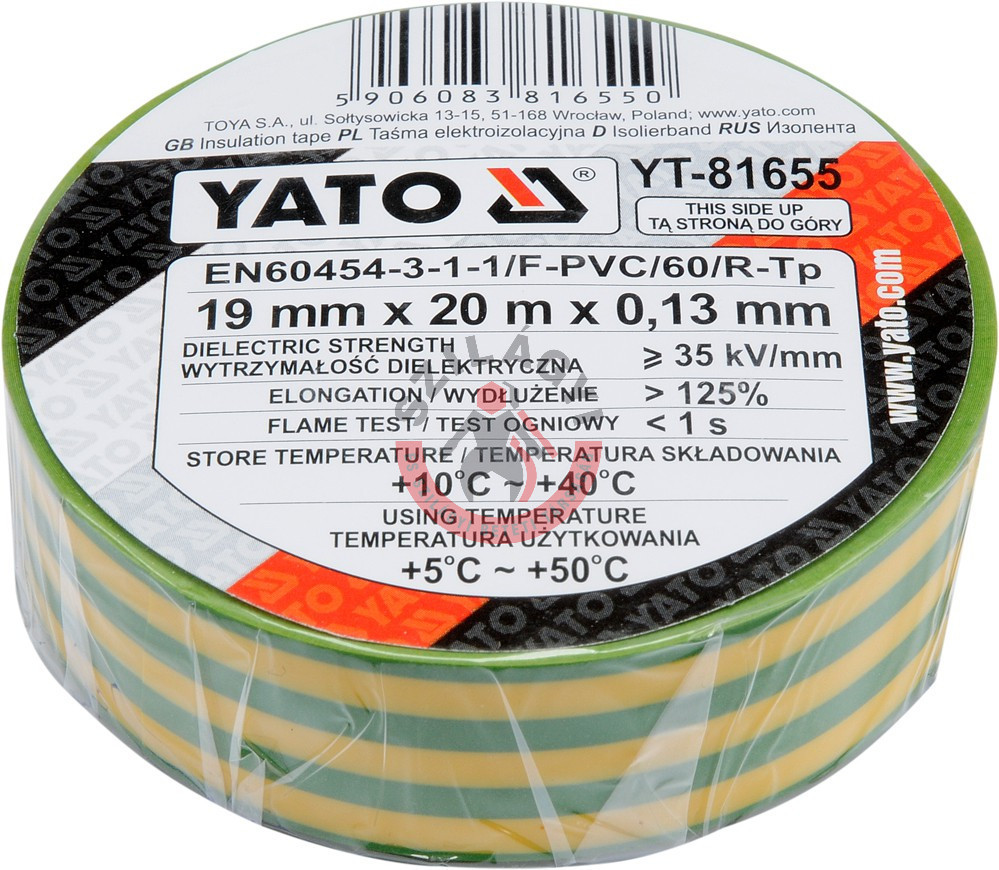 YATO YT-81655 Szigetelőszalag zöld-sárga 19mmx0.13mm 20m