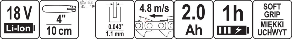 Akkus láncfűrész 100 mm 18 V (1 x 2,0 Ah akku + töltő)