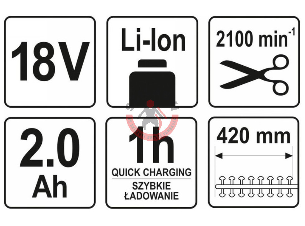 Akkus lombnyíró 18 V Li-Ion 2,0Ah akku+töltő 207-274 cm