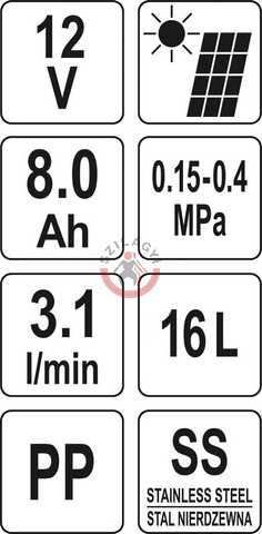 Akkus és napelemes háti permetező szett 16 liter ( 12 V/ 8,0 Ah )